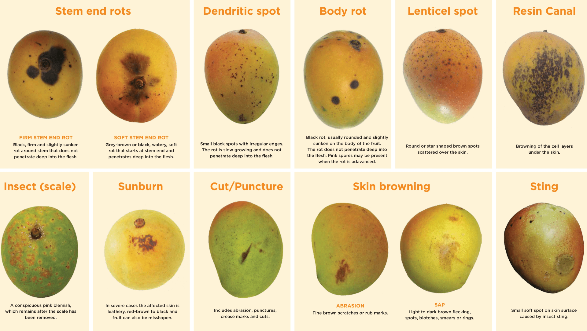 Đây là những vấn đề thường gặp của xoài. Một số phát hiện trên cây, một số phát hiện trong giai đoạn từ nhà cung cấp đến người mua.